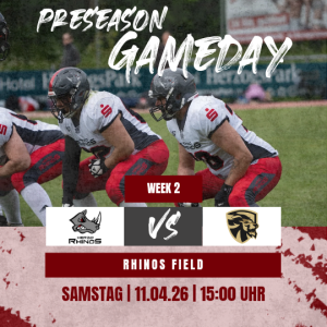 Im ersten Preseason Game stand vor allem das Sammeln von Spielerfahrung für die Neuzugänge der Rhinos im Vordergrund. Nun geht es darum, sich den notwendigen Feinschliff für die Saison zu holen.